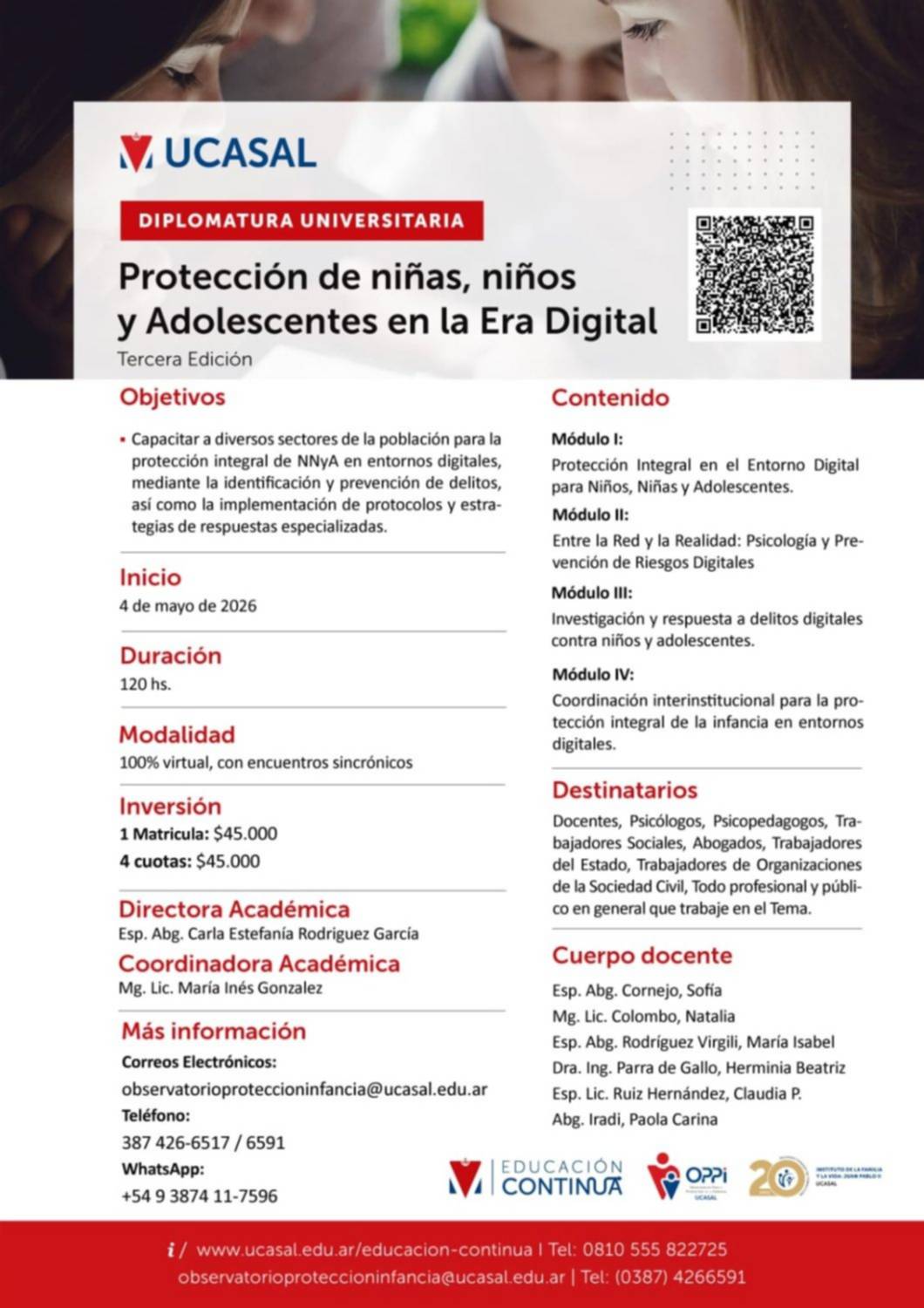 Más información: https://www.ucasal.edu.ar/educacioncontinua/diplomatura-proteccion-de-los-nnya-en-la-era-digital