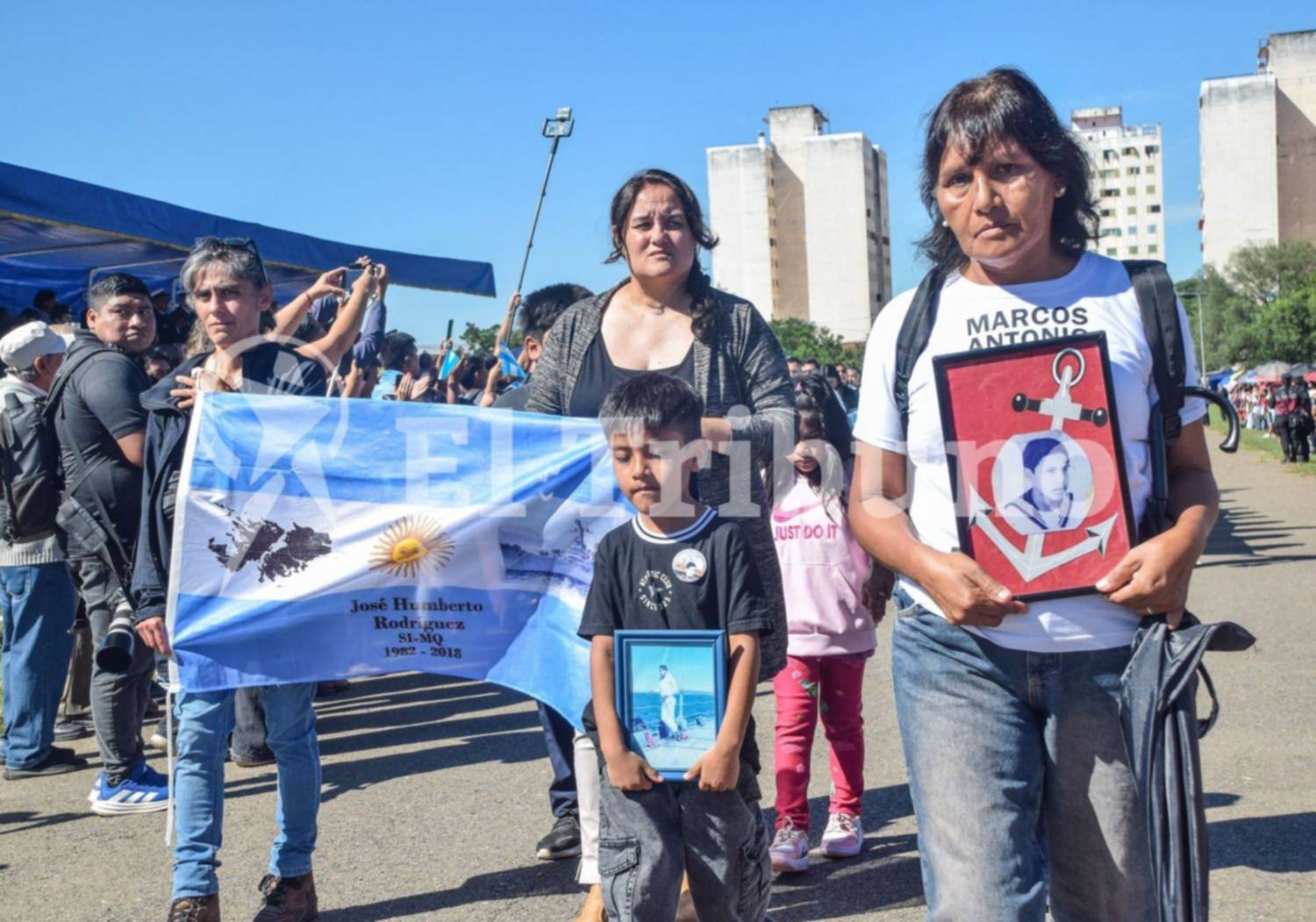 Los familiares de los soldados caídos avanzaron entre aplausos, portando banderas y remeras con los nombres de sus seres queridos.