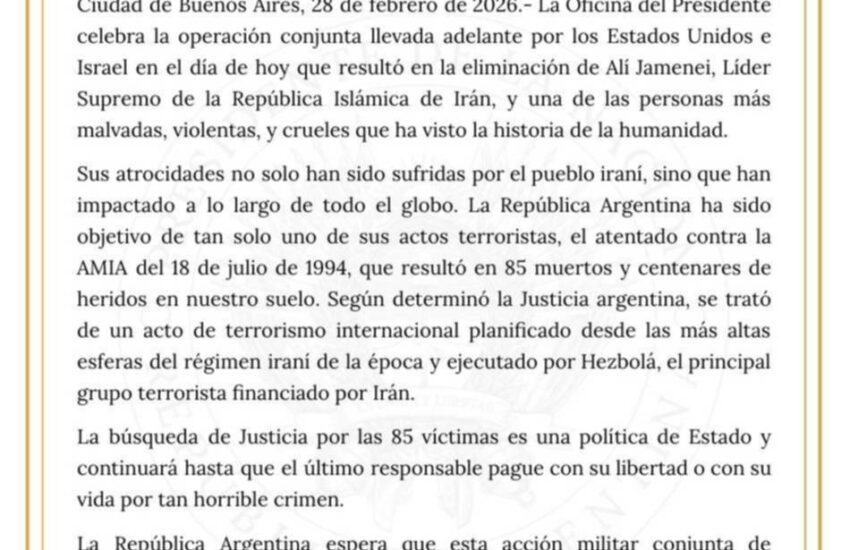 El comunicado oficial, difundido este 28 de febrero por la Oficina del Presidente, argumenta que la medida responde a los hechos de público conocimiento ocurridos en Medio Oriente, en referencia al reciente ataque de Estados Unidos contra Irán.