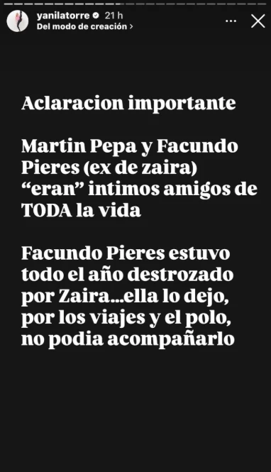 La polémica fue total cuando Yanina Latorre reveló un supuesto quiebre definitivo de Pepa con Pieres, amigo íntimo suyo. Según contó, “eran” amigos de toda la vida, pero ese vínculo se rompió de manera abrupta. En el centro aparece Zaira, que hace apenas unos días confirmó su noviazgo con Strom, un multimillonario francés.